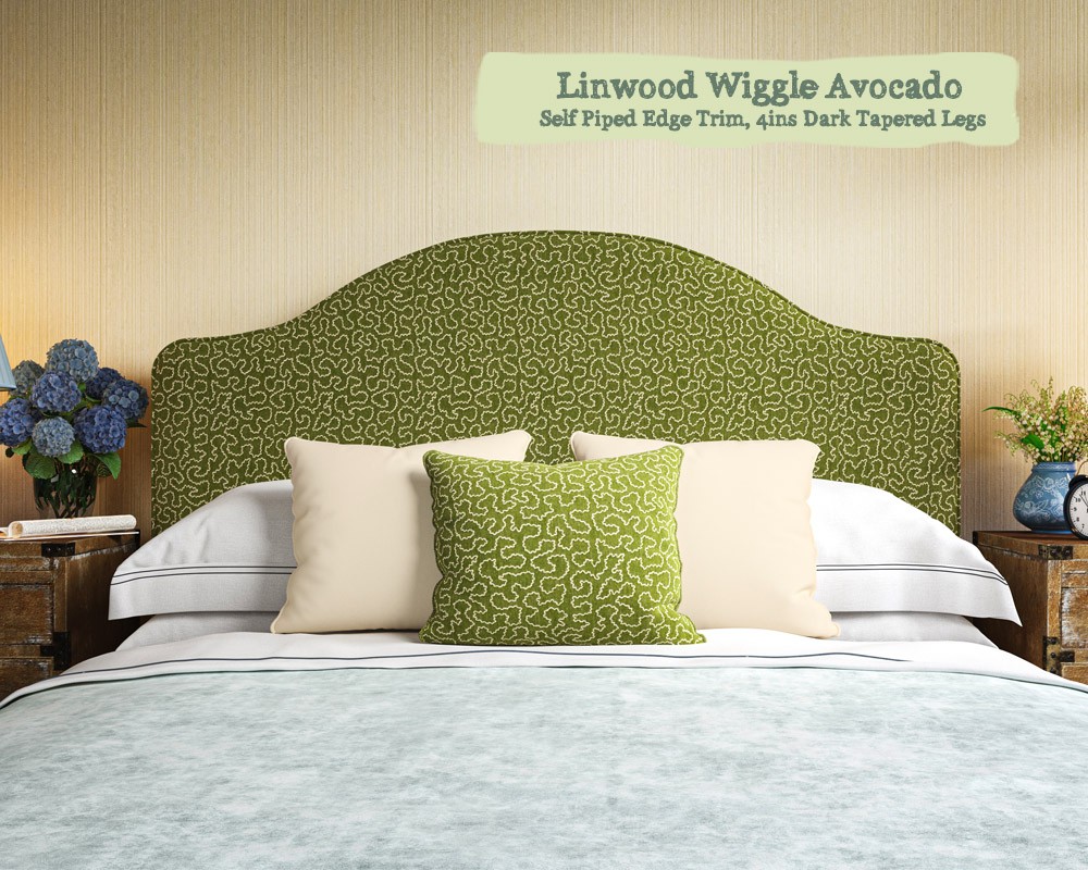 Barra Bed in Linwood Wiggle Avocado, Self Piped, 4ins Dark Tapered Feet