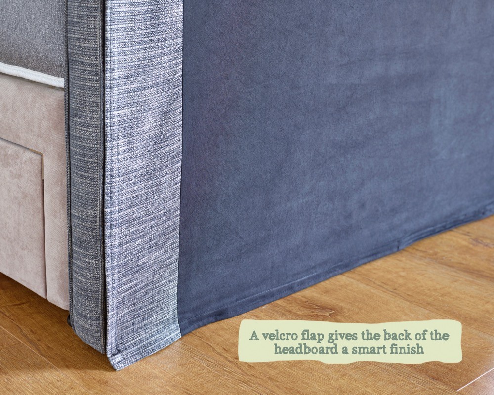The Sanday has been designed with a neat velcro flap to cover the divan bed fixings. If you would like to combine this headboard with our Guernsey bed base, please contact us.