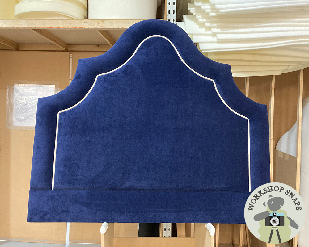 Kingsize Bryher Headboard - House Velvet Indigo - Contrast Piped in HC Vanilla - With Pillowstop - 234194