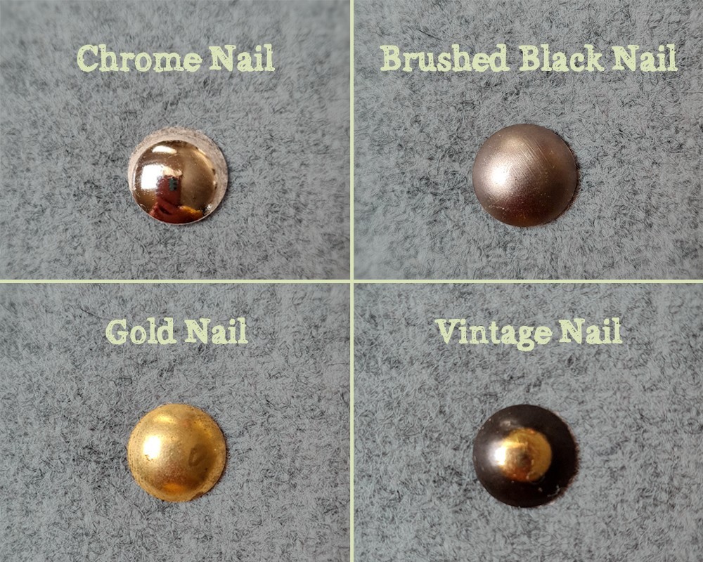 The inset 15mm braid is available in Ivory with either Chrome, Brushed Black, Gold or Vintage 11mm nails. Alternatively you can opt for strip studs inset detail. Please scroll to the end of the gallery for example images.