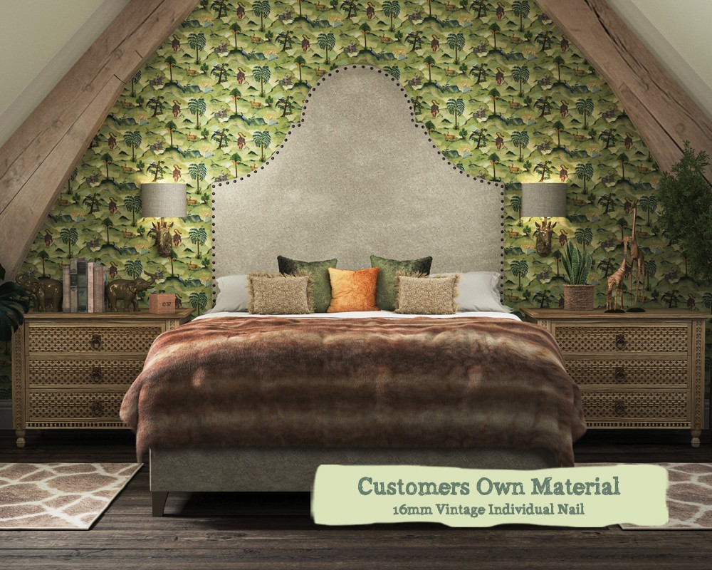 Kingsize Headboard Rum Customers Own Material 16mm Vintage Individual Nail