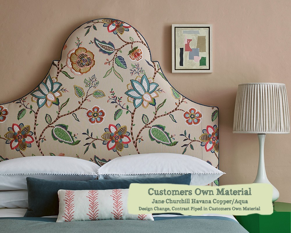 Kingsize Headboard Rum Jane Churchill Havana Copper Aqua Contrast Piped Customers Own Material