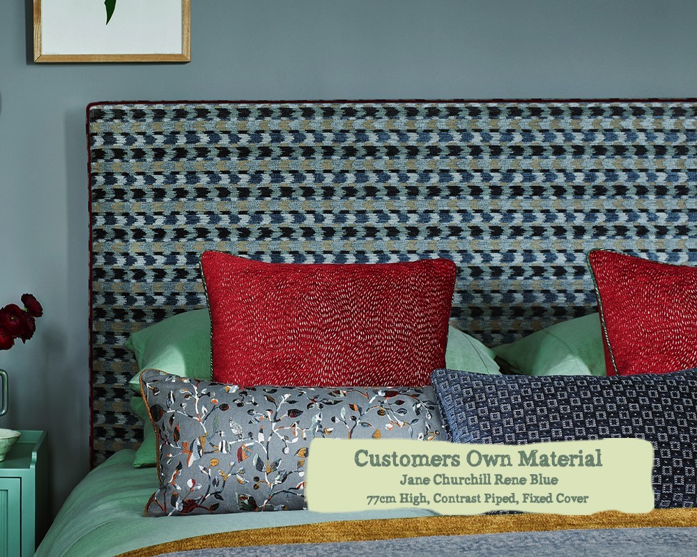 Kingsize Headboard Harris Jane Churchill Rene Blue 77cmH Contrast Piped COM Fixed Cover