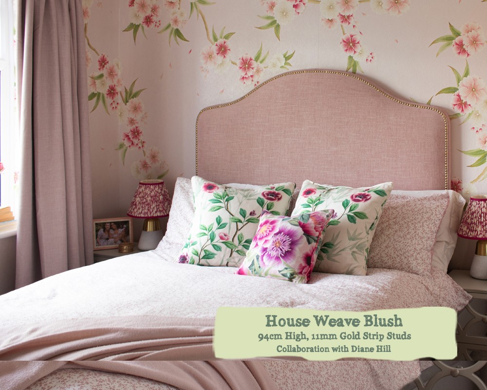 Kingsize Headboard Barra House Weave Blush 94cm Height 11mm Gold Strip Studs