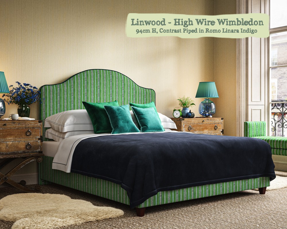 Bespoke Height Kingsize Barra Headboard - Customers Own Material - Fermoie Orchard Stripe - 71cmH - Contrast Piped in Samuel & Sons Saisons Cord Polo - 245581