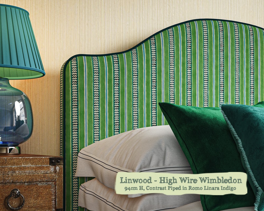 Barra Headboard in Linwood High Wire Wimbledon, 94cm High, Contrast Piped in Romo Linara Indigo