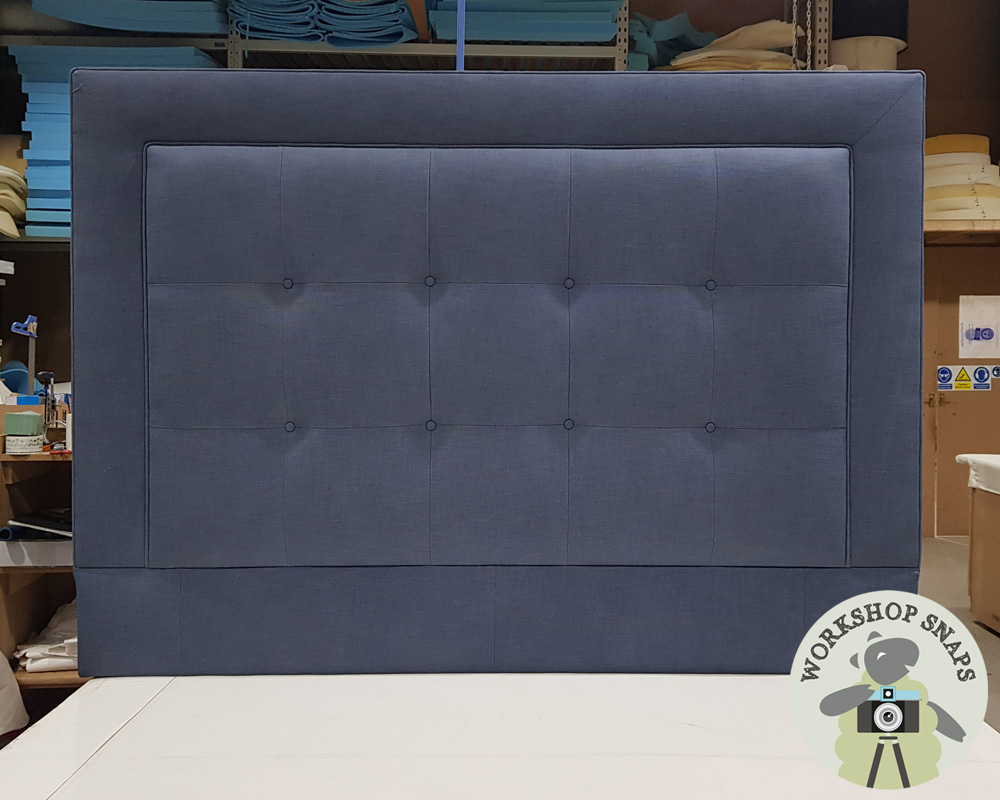 Kingsize Jura Headboard - House Cotton Oxford Blue - 35ins - Buttoned & Panelled Centre - Self Piped - Self Buttoned - 236173