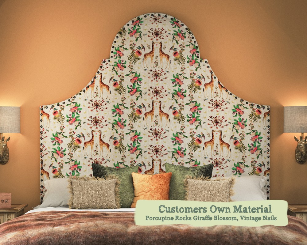 Our new Rum is an extra tall, curved and stepped headboard that makes an elegant and regal statement, perfect for pairing with Porcupine Rocks Giraffe Blossom.