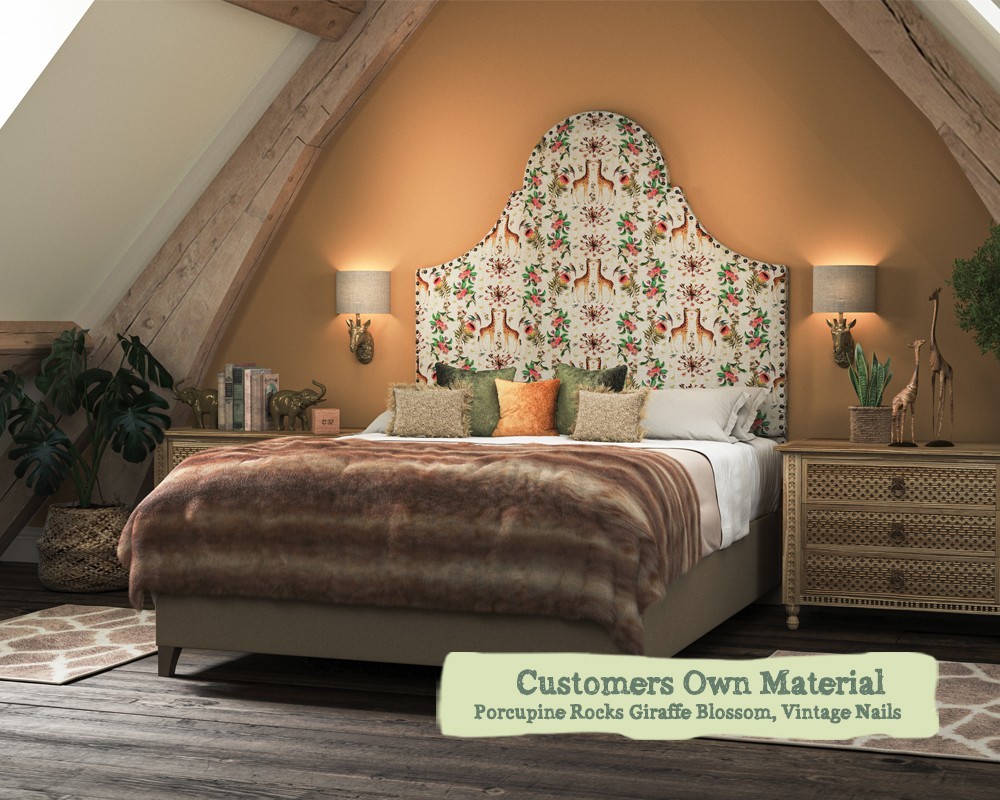 Our new Rum is an extra tall, curved and stepped headboard that makes an elegant and regal statement, perfect for pairing with Porcupine Rocks Giraffe Blossom.