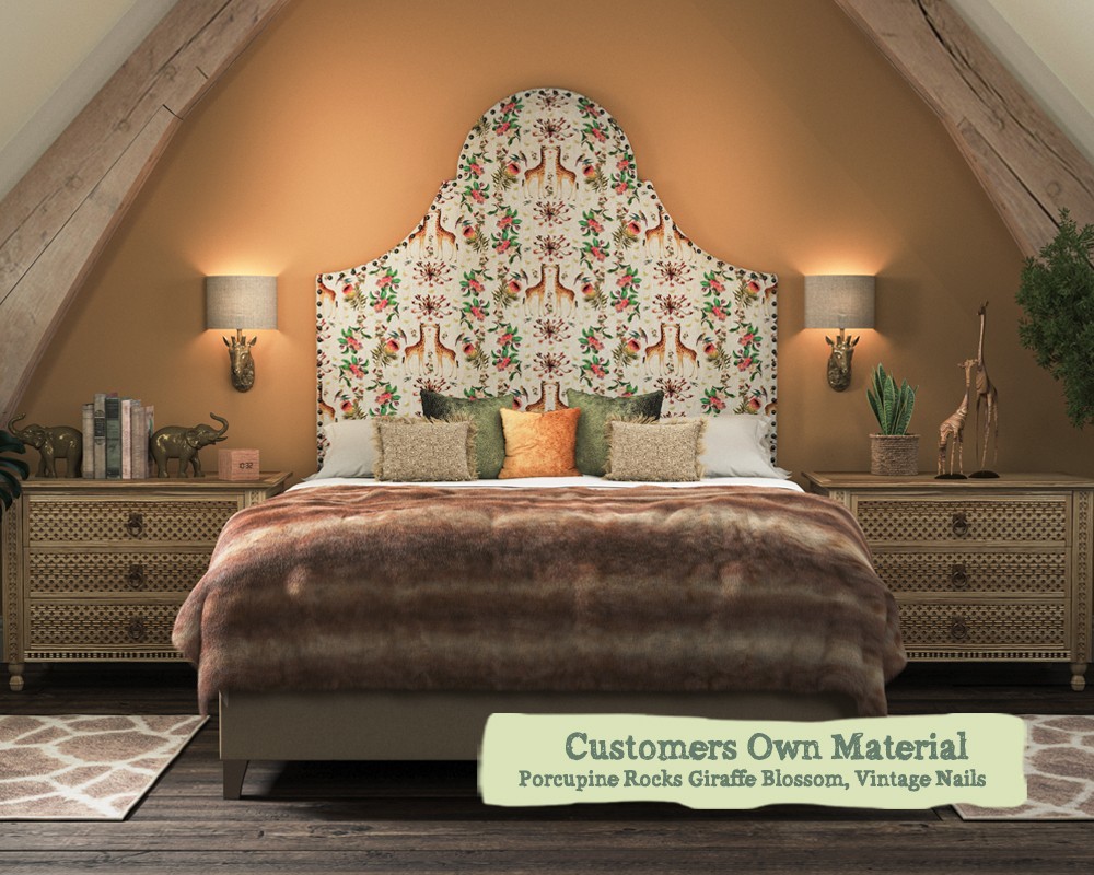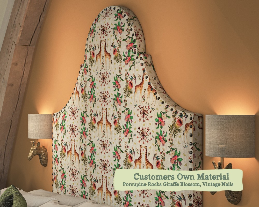 Our new Rum is an extra tall, curved and stepped headboard that makes an elegant and regal statement, perfect for pairing with Porcupine Rocks Giraffe Blossom.