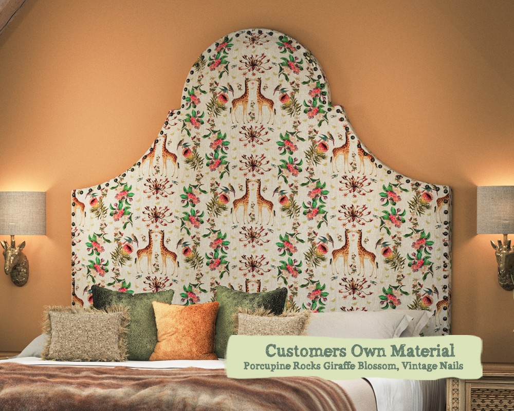Our new Rum is an extra tall, curved and stepped headboard that makes an elegant and regal statement, perfect for pairing with Porcupine Rocks Giraffe Blossom.