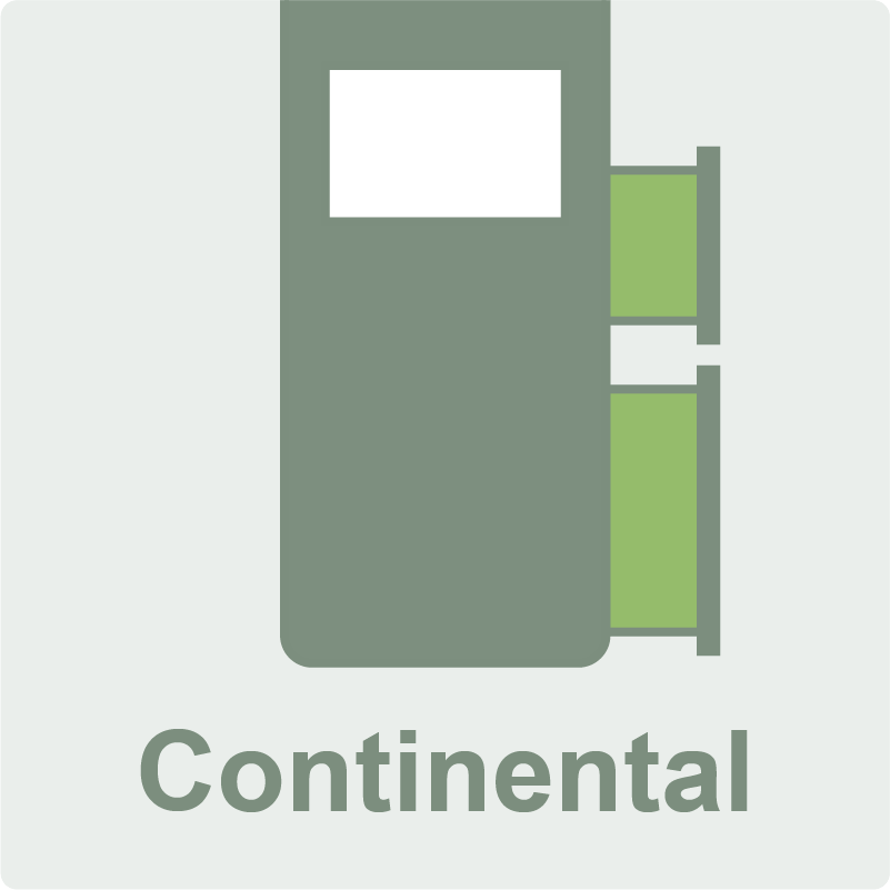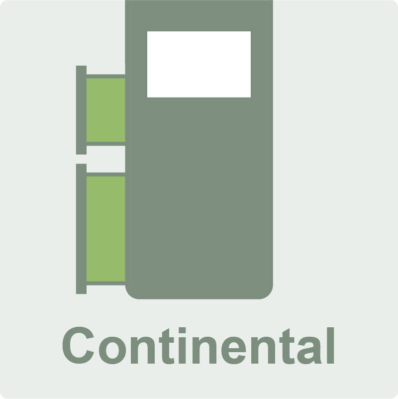 Opt for the continental drawers if you would like access with a bedside table or if you are ordering one of our winged headboards. The continental drawer option has one full sized drawer and one smaller drawer, which provides a clearance of 42cm from the headend.
