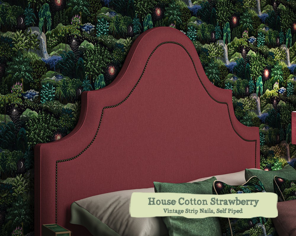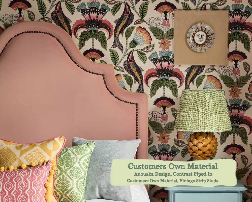 The headend's inset 15mm braid is available in Ivory with either Chrome, Brushed Black, Gold or Vintage 11mm nails. Alternatively you can opt for strip studs inset detail. Please scroll to the end of the gallery for example images.