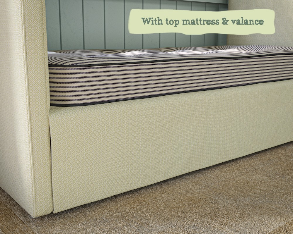The complimenting slimline top mattress (with black edge piping) at 7ins (18cm) high, sits perfectly inside our Flexibed.