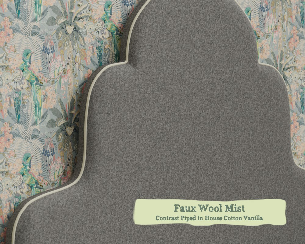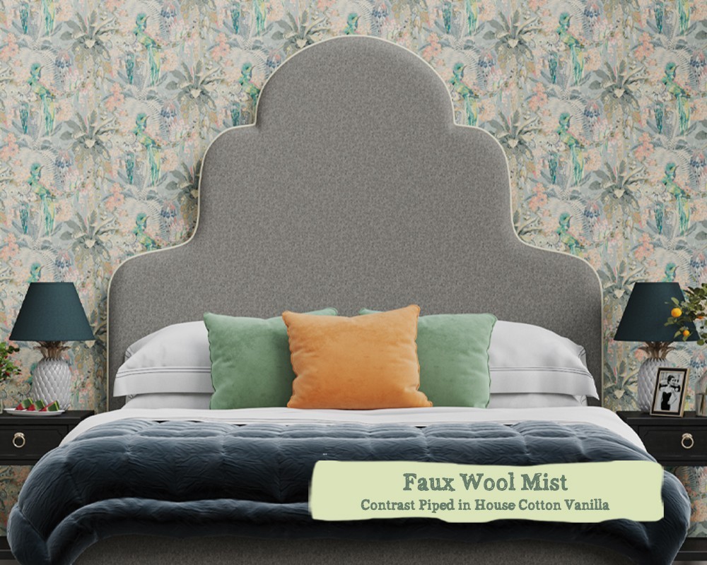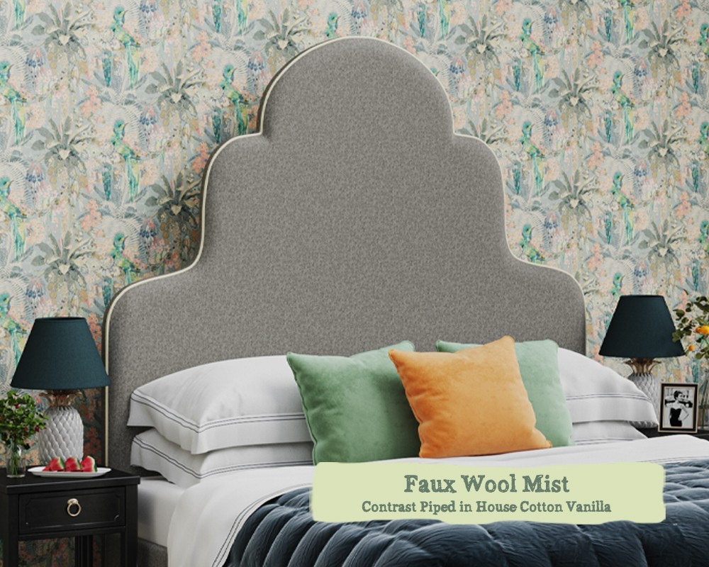 We are absolutely delighted with our headboard! The fabric is exactly right in our room and looks beautiful with the piping. The delivery process was seamless and my husband was able to install the headboard without any difficulties.