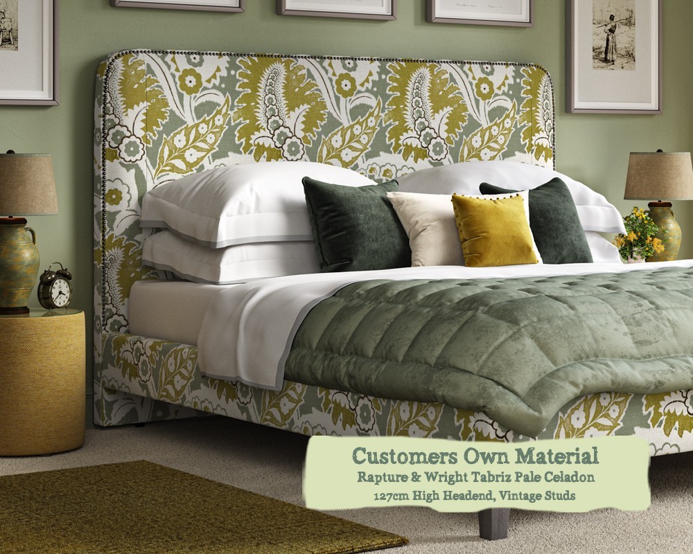 Single Grand Bed Faray Rapture and Wright Tabriz Pale Celadon 127cm Height 11mm Vintage Strip Studs