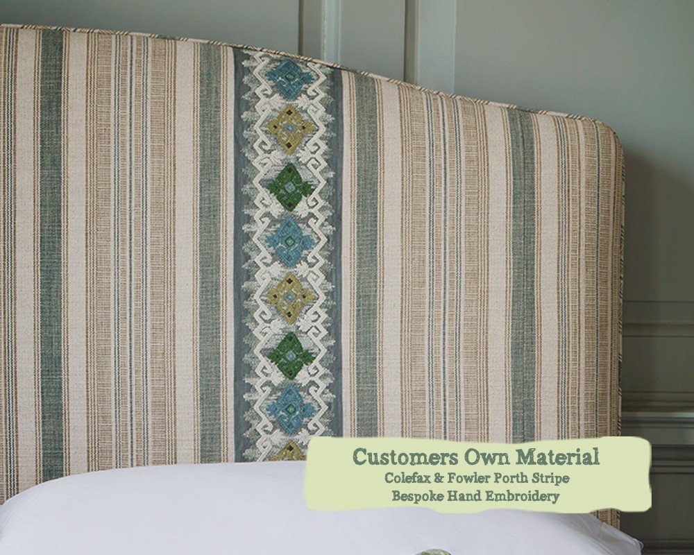 Single Headboard Caldey Colefax & Fowler Porth Stripe 30ins Hand Embroidery