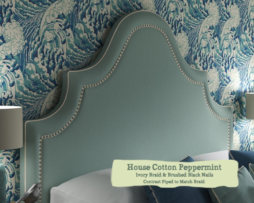 2x Single Kerrera Headboard - House Cotton Peppermint - Ivory Braid - Brushed Black Nails - Contrast Piped to Match Braid - 240745