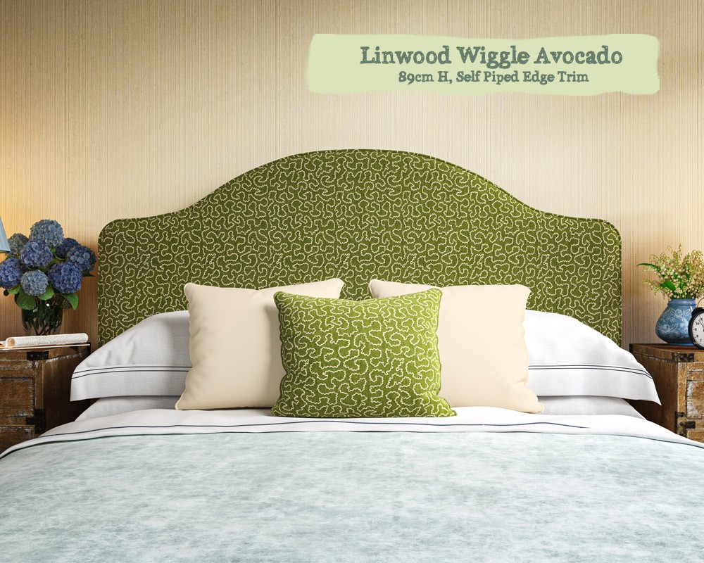 Barra Headboard in Linwood Wiggle Avocado, 89cm High, Self Piped Edge Trim