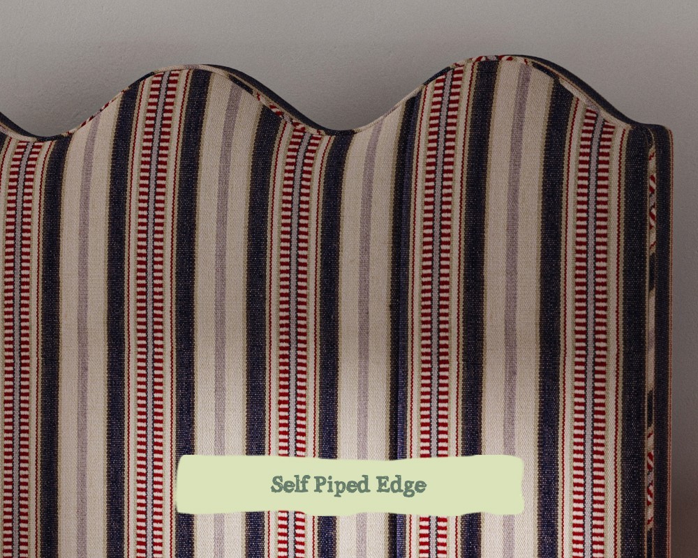 We are absolutely delighted with our headboard! The fabric is exactly right in our room and looks beautiful with the piping. The delivery process was seamless and my husband was able to install the headboard without any difficulties.