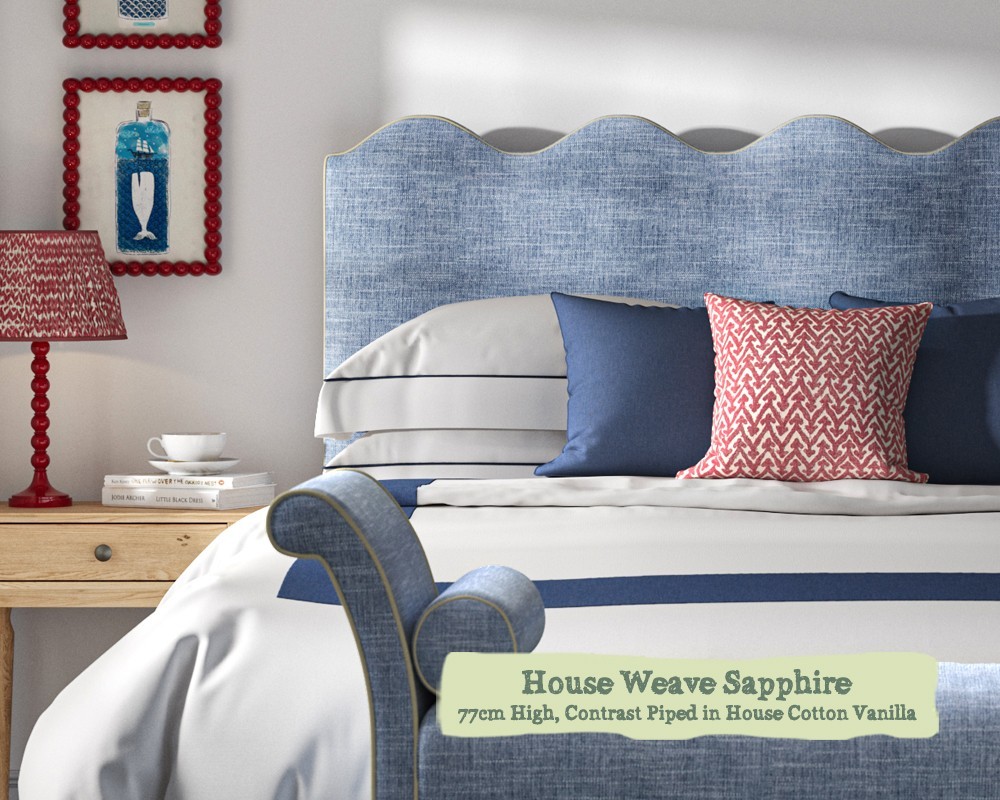 Single Solas Headboard in House Weave Sapphire Contrast Piped 77cm High