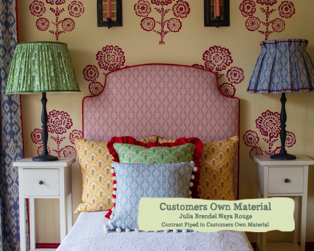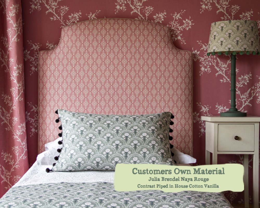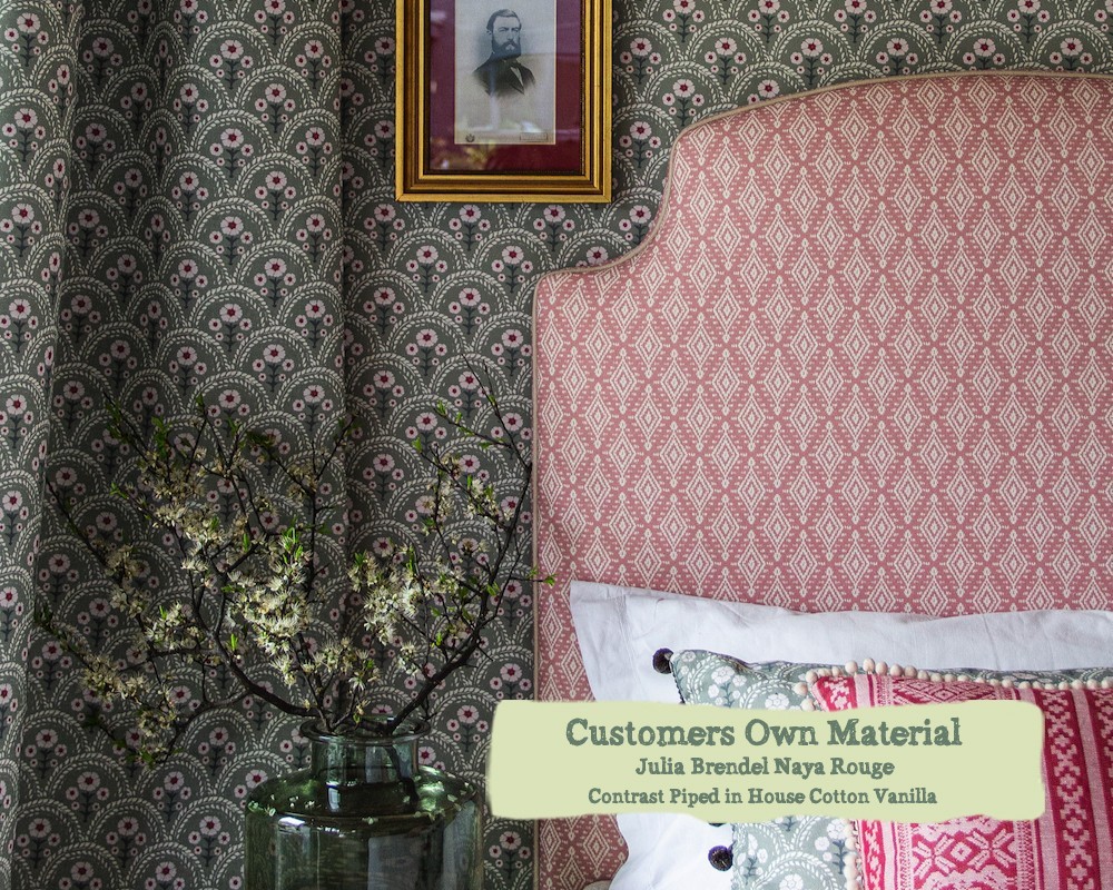 Single Puffin Headboard - Customers Own Material - Claremont Alhambra Rose - Self Piped - With Pillowstop - 238313