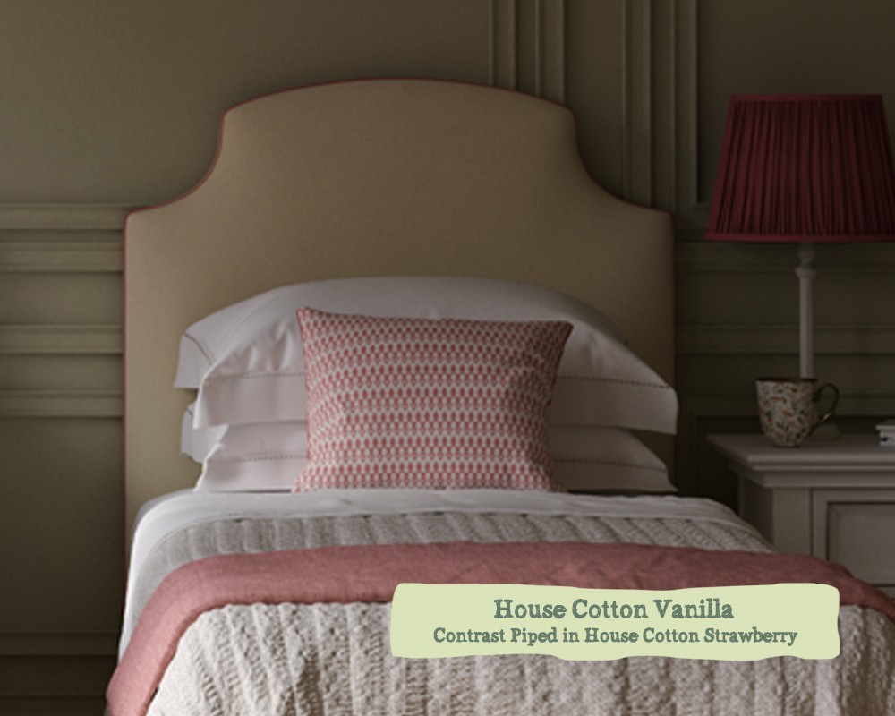 Single Headboard Puffin House Cotton Vanilla Contrast Piped in House Cotton Strawberry