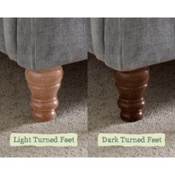 The headboard is available at 2 heights from the floor; 50ins (127cm) or 65ins (165cm). The footboard is also available plain at 14.6ins (37cm) or as a shallow buttoned 27ins (68.6cm) version. Offered with a choice of 4ins (10.2cm) leg styles and colours at footend.