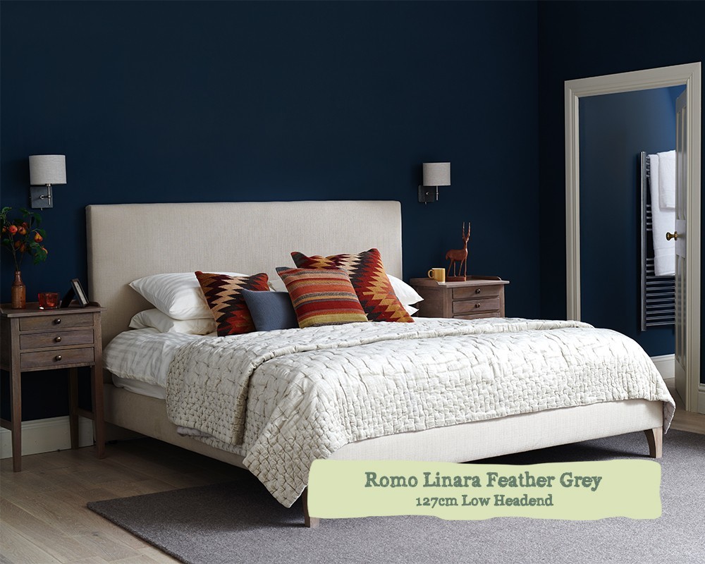 Small Double Grand Bed Arran Romo Linara Feather Grey 127cm Low Headend 6ins Legs