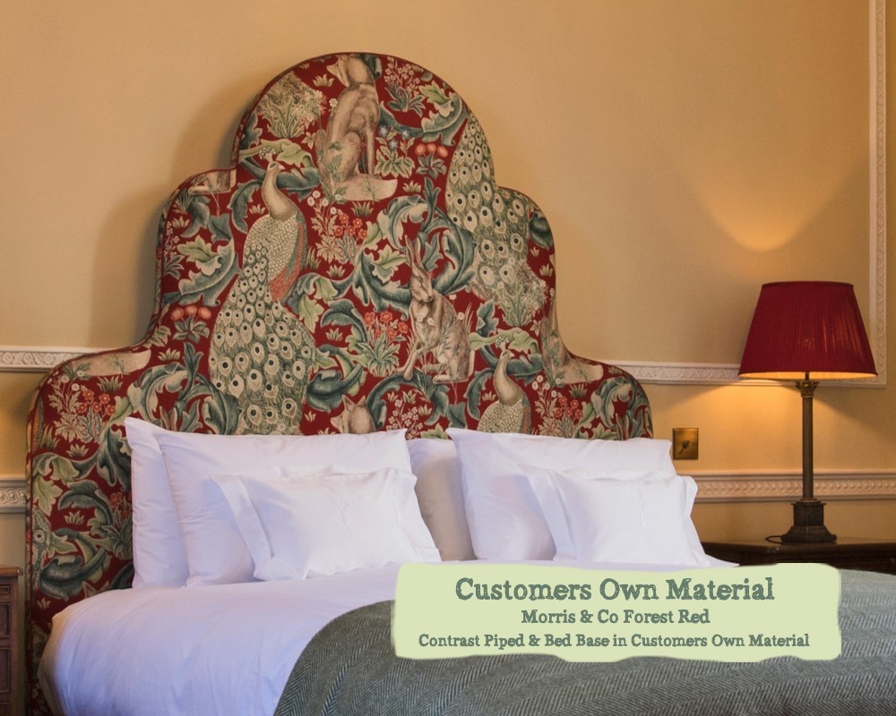 Small Double Bed Eigg Morris & Co Forest Red Contrast Piped and Bed Base Customers Own Material