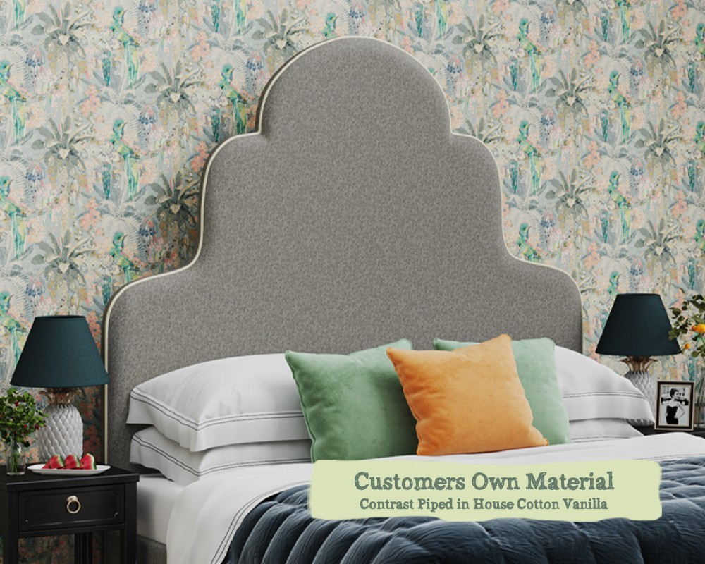We are absolutely delighted with our headboard! The fabric is exactly right in our room and looks beautiful with the piping. The delivery process was seamless and my husband was able to install the headboard without any difficulties.