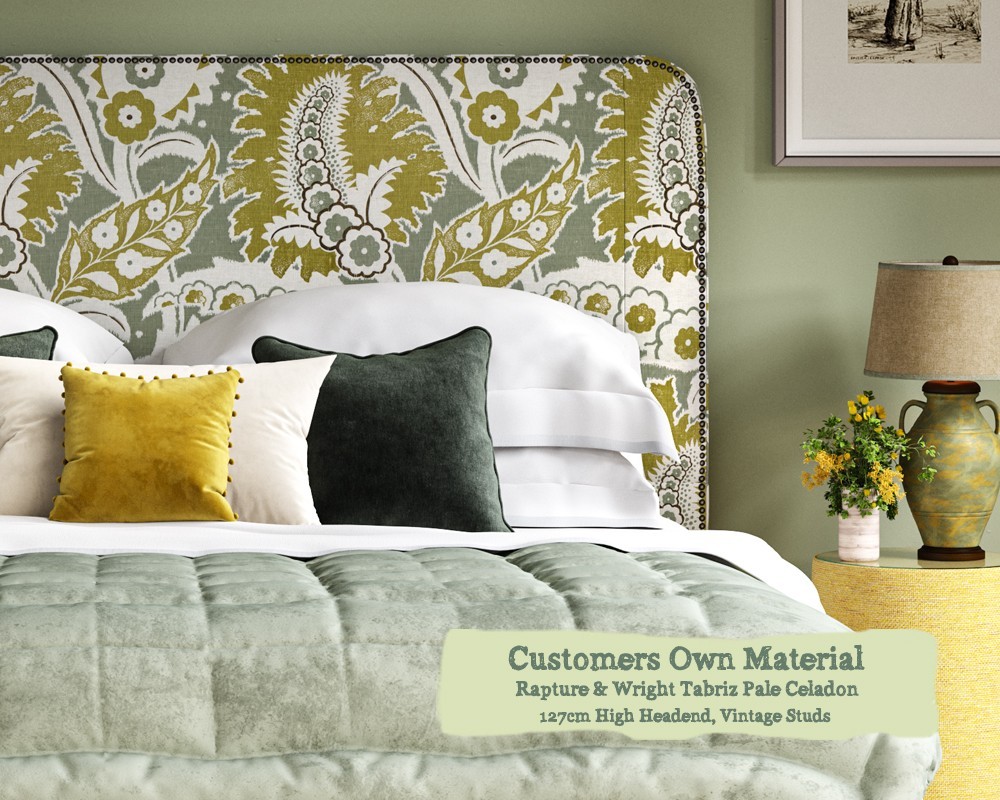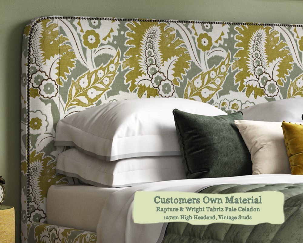Small Double Grand Bed Faray Rapture & Wright Tabriz Pale Celadon 127cm Height 11mm Vintage Strip Studs