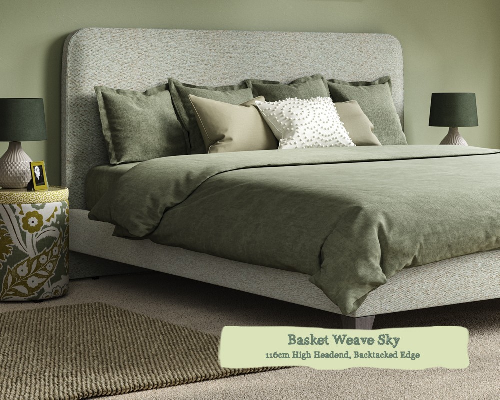 Small Double Grand Bed Faray Basket Weave Sky 116cm Height Back Tacked Edge