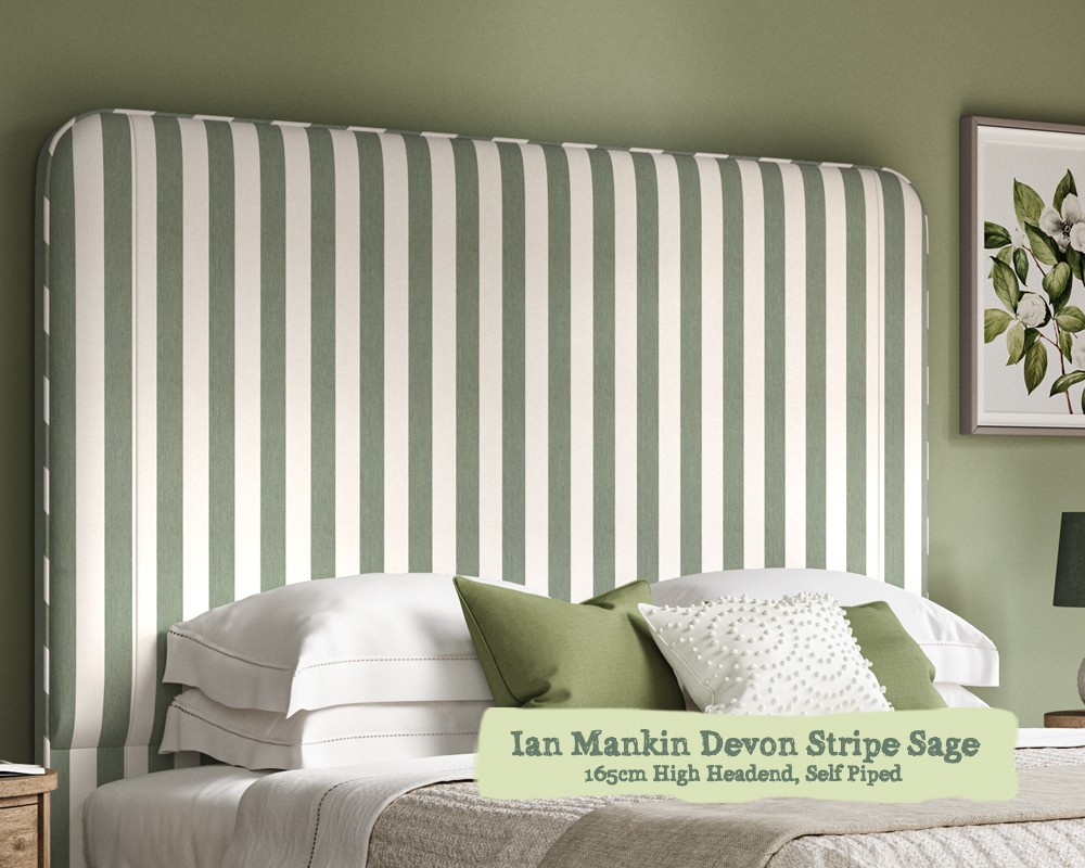 Small Double Grand bed Faray Ian Mankin Devon Stripe Sage 165cm Height Self Piped