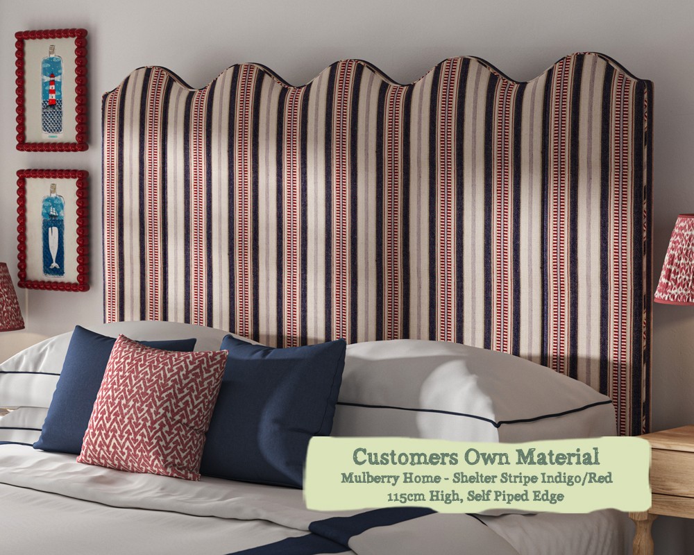 Kingsize Solas Headboard in Mulberry Home Shelter Stripe Indigo/Red