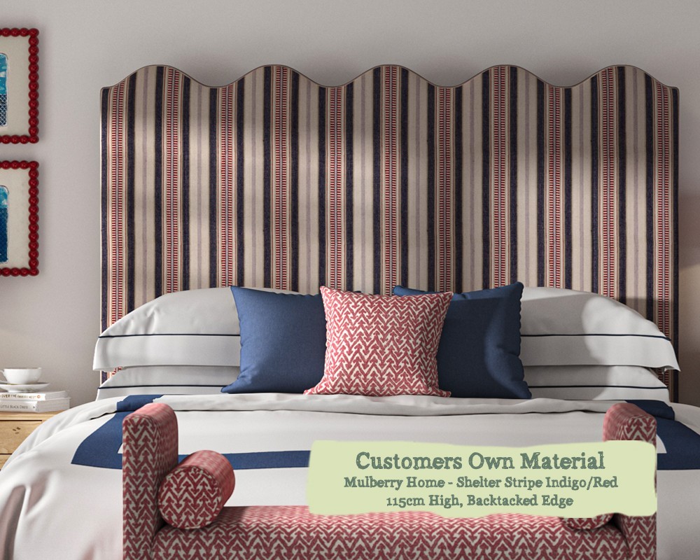 Super King Solas Headboard in Mulberry Home Shelter Stripe Indigo/Red