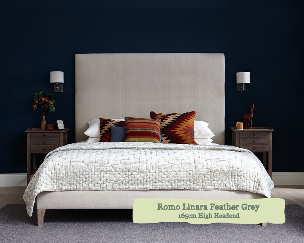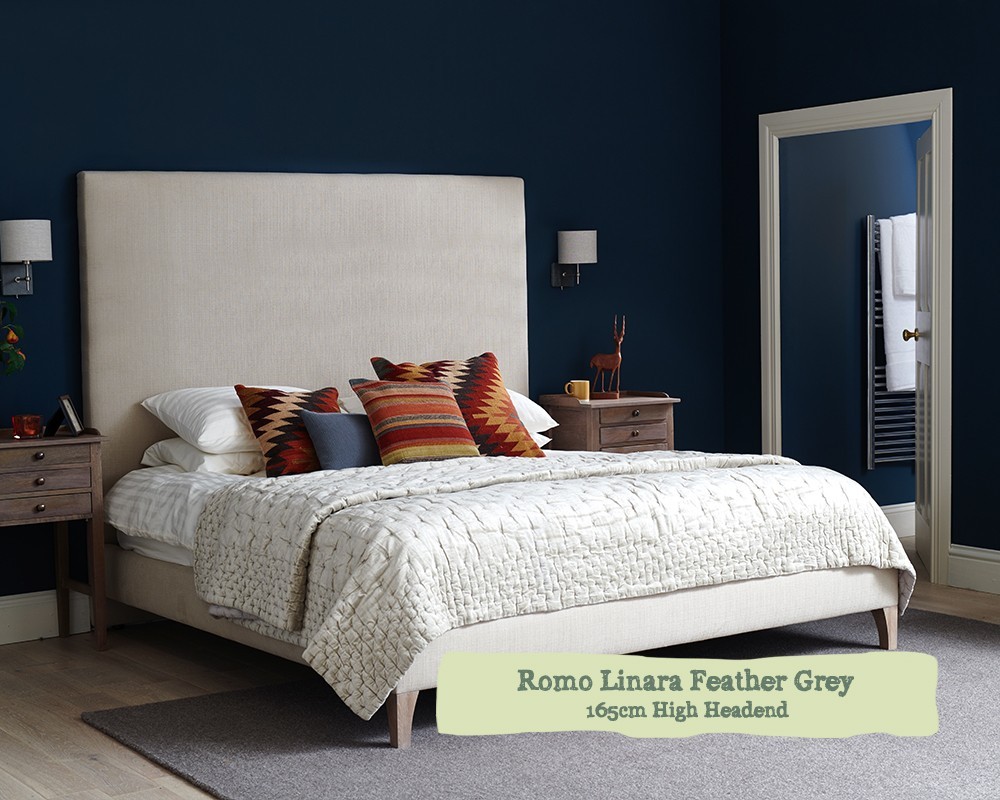 Super King Grand Bed Arran Romo Linara Feather Grey 165cm High Headend 6ins Legs