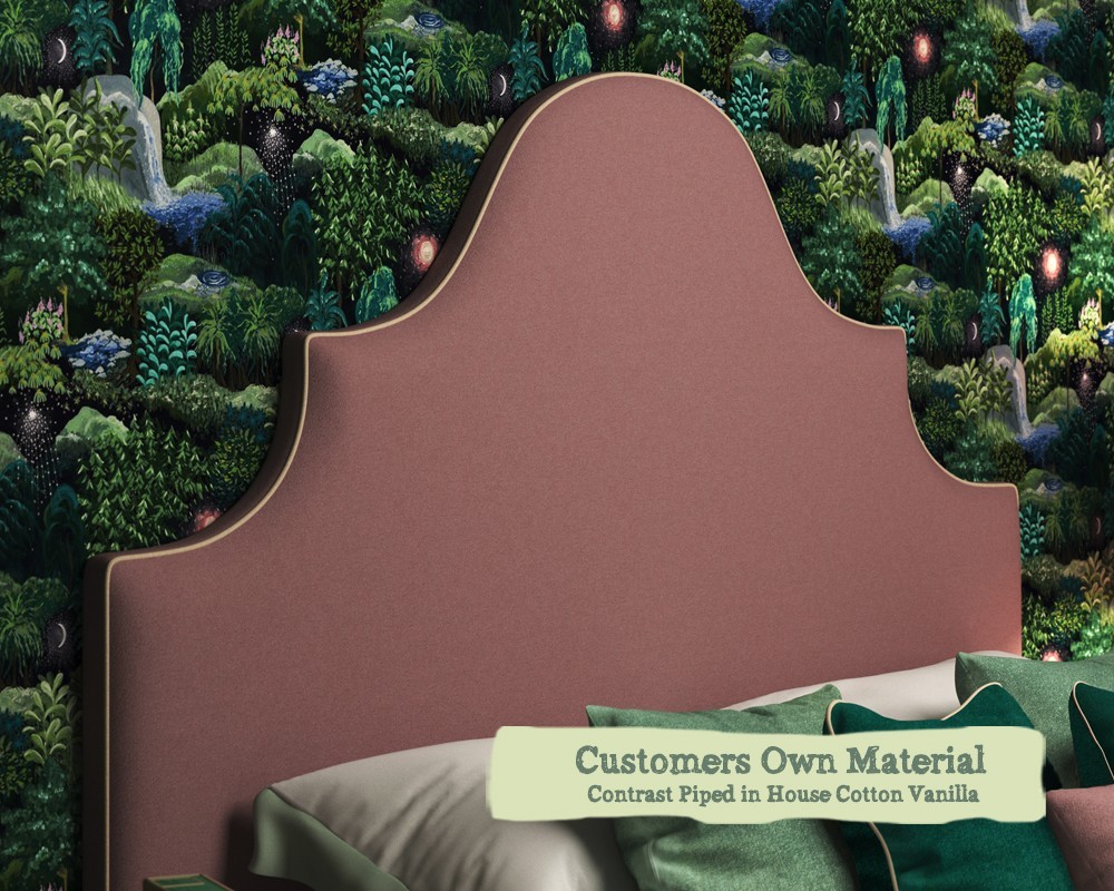 A grand curved profile with a subtle piping surround. Perfect for making a statement with a bold fabric.