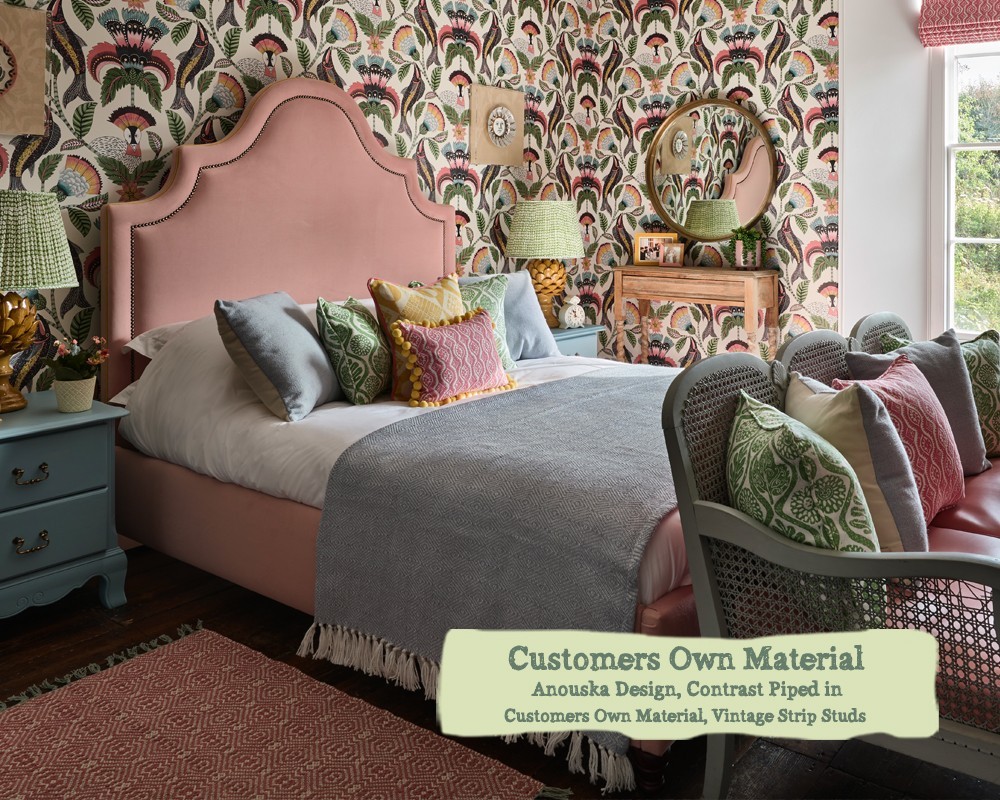 Super King Bed Kerrera Customers Own Material Contrast Piped COM Vintage Strip Studs