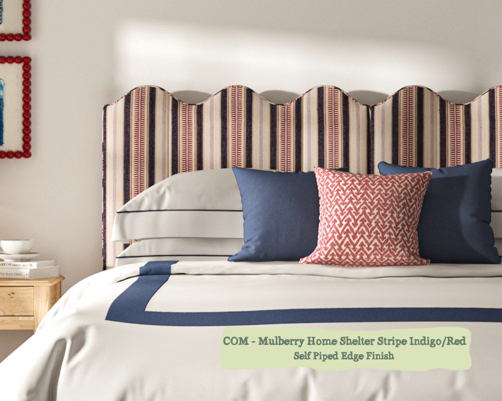 We are absolutely delighted with our headboard! The fabric is exactly right in our room and looks beautiful with the piping. The delivery process was seamless and my husband was able to install the headboard without any difficulties.