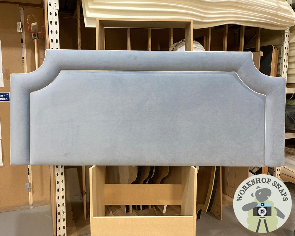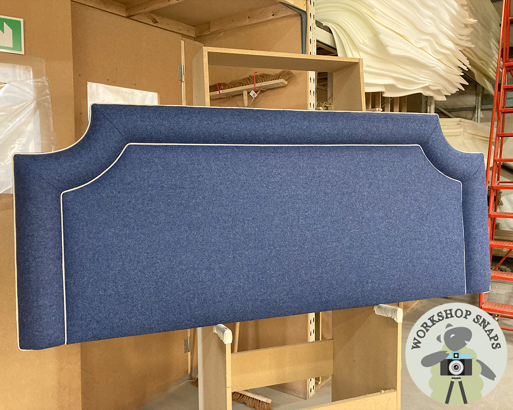 Design Change Super King Plain Front Annet Headboard - Customers Own Material - Penny Morrison Casper Blue - Contrast Piped in COM - With Pillowstop - 239486