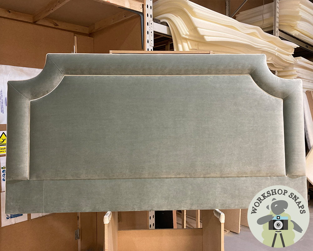 Super King Annet Headboard - Linwood Omega Velvet Duck Egg - Contrast Piped in HC Vanilla - With Pillowstop - 242032