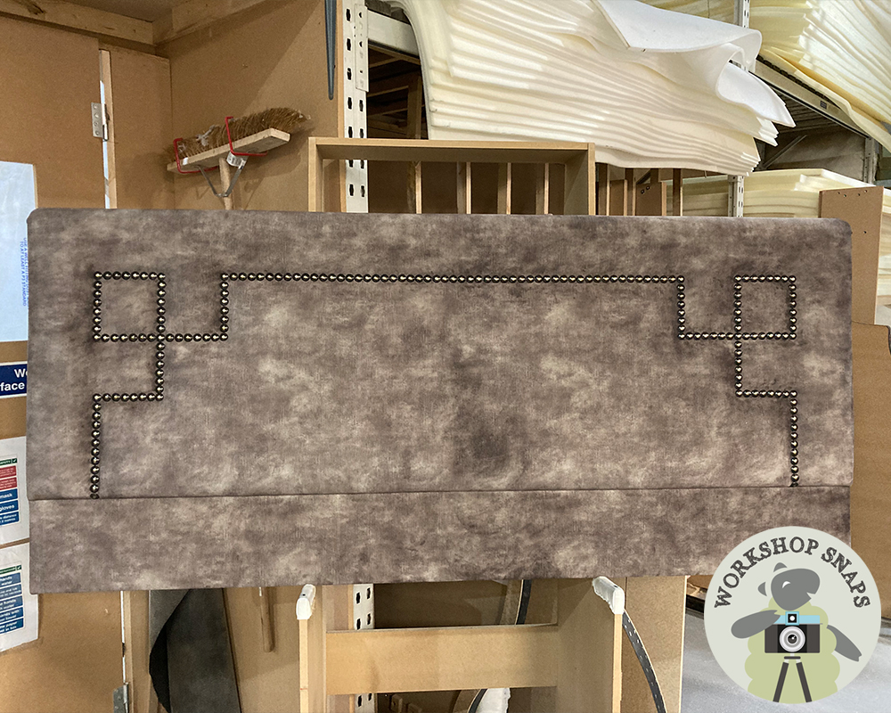 Super King Eriskay Headboard - Customers Own Material - JBrown Modena Flint - 45ins - Vintage Studs - With Pillowstop - 223955 (2)