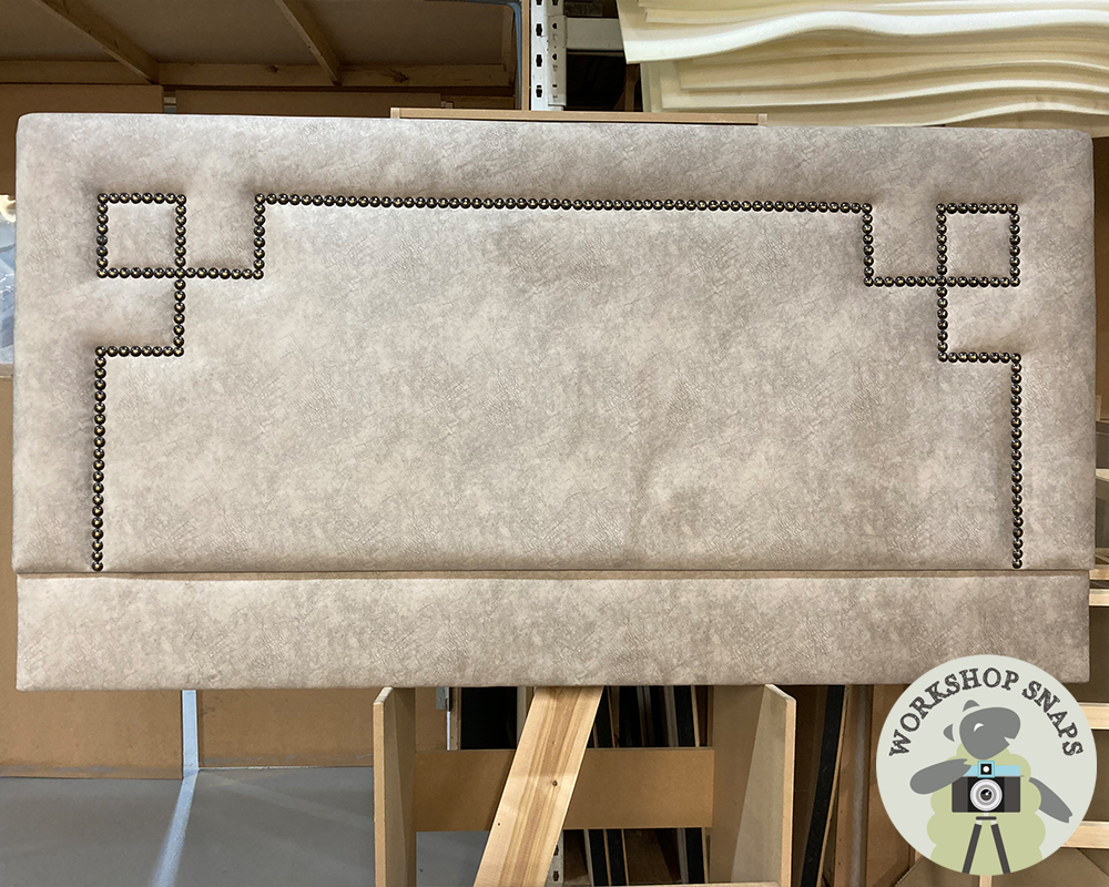 The Eriskay is expertly upholstered and hand nailed in a choice of 4 stud colourways in a ‘greek key’ arrangement at the corners. Available in 3 heights; 24ins (61cm), 30ins (77cm) or 45ins (115cm). This bedhead makes a very fashionable statement.