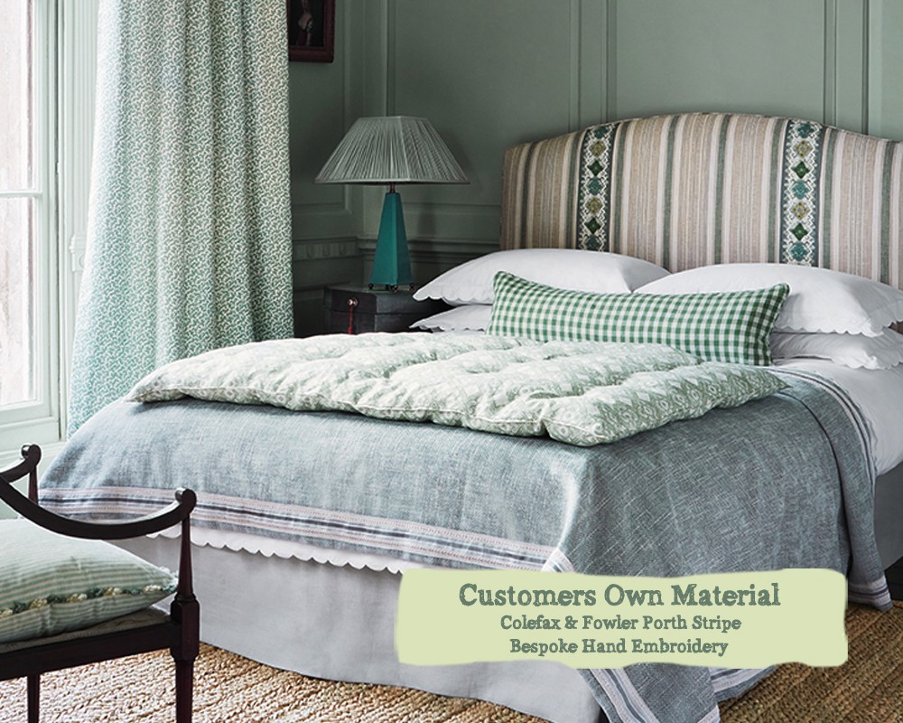 Super King Headboard Caldey Colefax & Fowler Porth Stripe 30ins Hand Embroidery