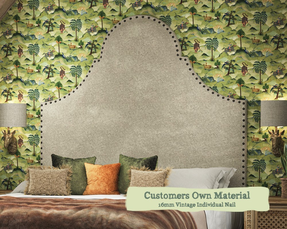 Super King Headboard Rum Customers Own Material 16mm Vintage Individual Nail