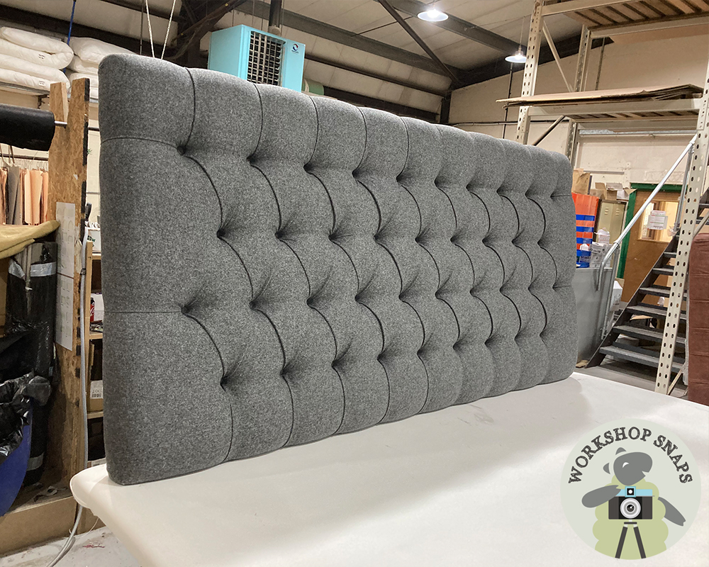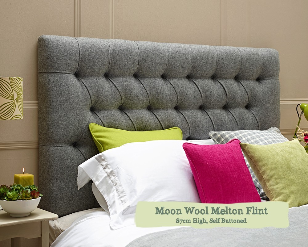 Super King Deep Buttoned Headboard Iona Moon Wool Melton Flint 87cm Height Self Buttoned
