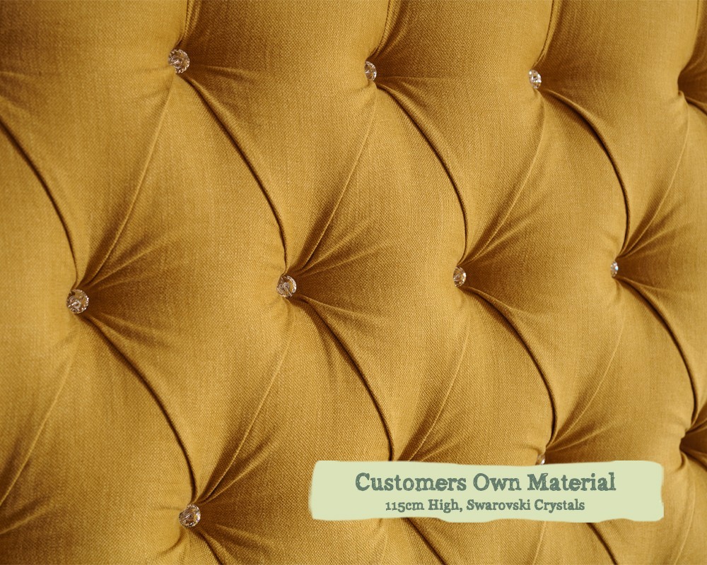 Super King Deep Buttoned Headboard Iona Customers Own Material 115cm Height Swarovski Crystals