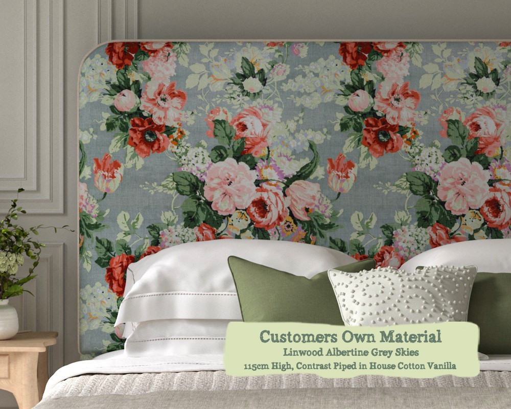 Super King Faray Headboard - Customers Own Material - Fermoie Cove 008 - 24ins - Self Piped - With Pillowstop - 241906