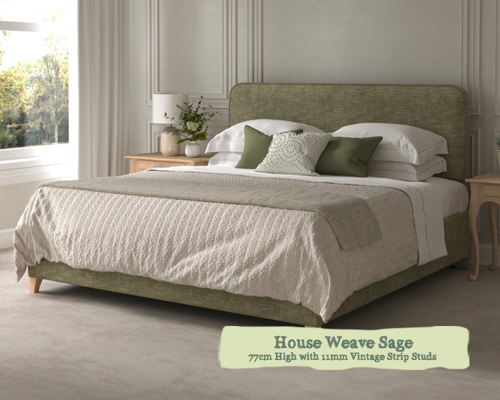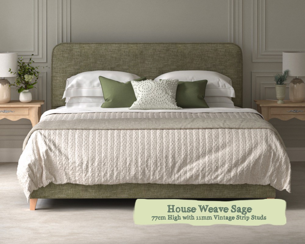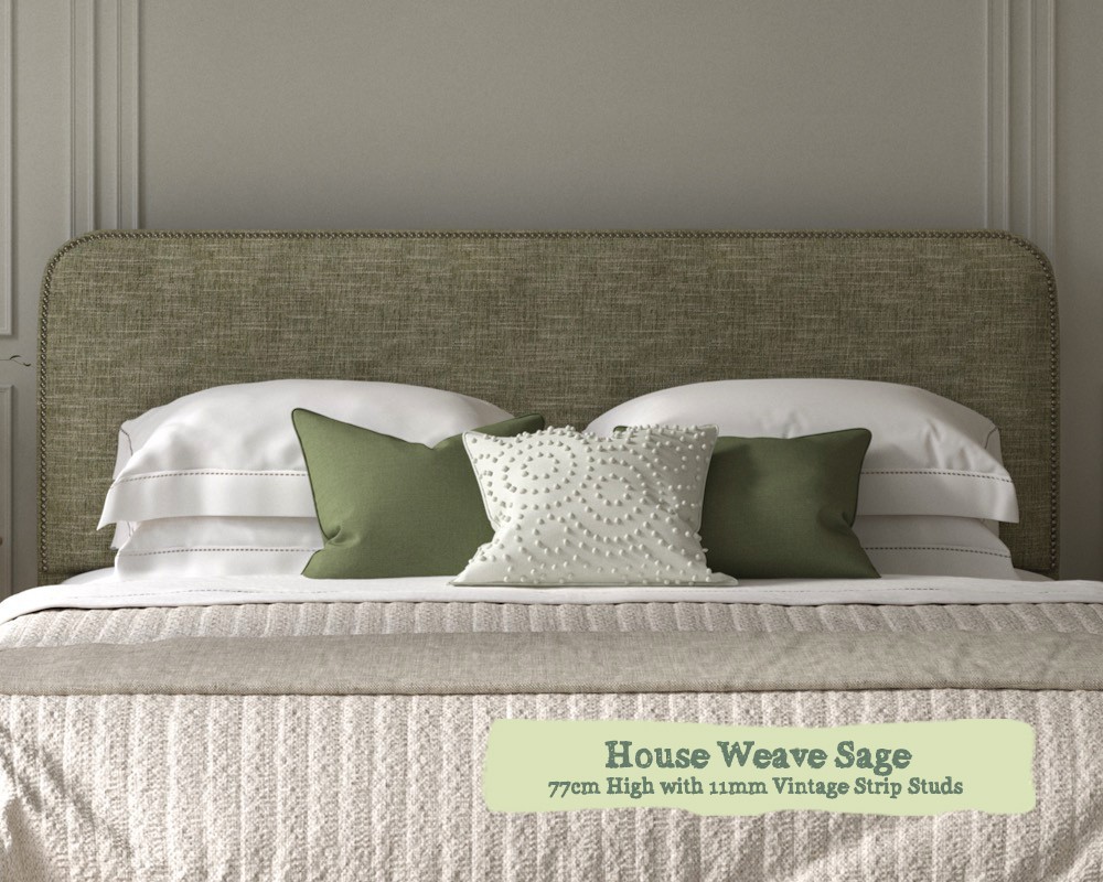 Super King Headboard Faray House Weave Sage 77cm Height 11mm Vintage Strip Studs